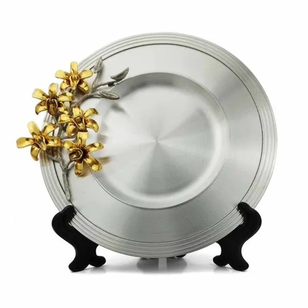 • Gold Plated Orchid Pewter Plate (M)